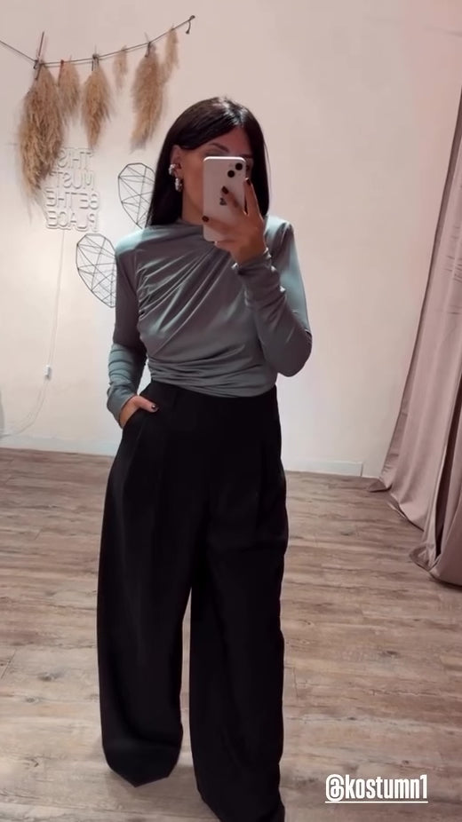 Particolare drappeggio sul davanti che dona movimento al capo e nasconde le forme